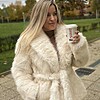 Croiala lejeră, completată de cordonul în talie, conturează frumos silueta, iar detaliile din blană ecologică adaugă o notă luxoasă și sofisticată. Nuanța deschisă oferă un aer delicat, potrivit atât pentru ținute de zi, cât și pentru seri elegante.